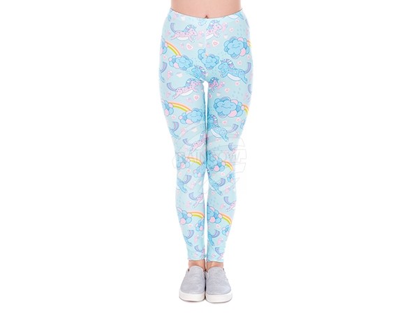 Damen Motiv Leggings Einhorn blau/rosa/weiss