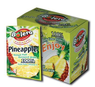 ... Das Paket hat 24 Beutel dieser Sorte. Jeder Beutel hat 9 Gramm Getränkepulver für 1,5 Liter Getränk. Einfach 1 Beutel Bolero in eine leere Flasche oder Kanne schütten. Dann normales Leitungswasser zugeben. Schon haben Sie einen leckeren Saft. 1 Beute