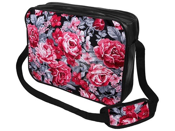 Messenger Bag Motiv Hibiscus rosa/grau