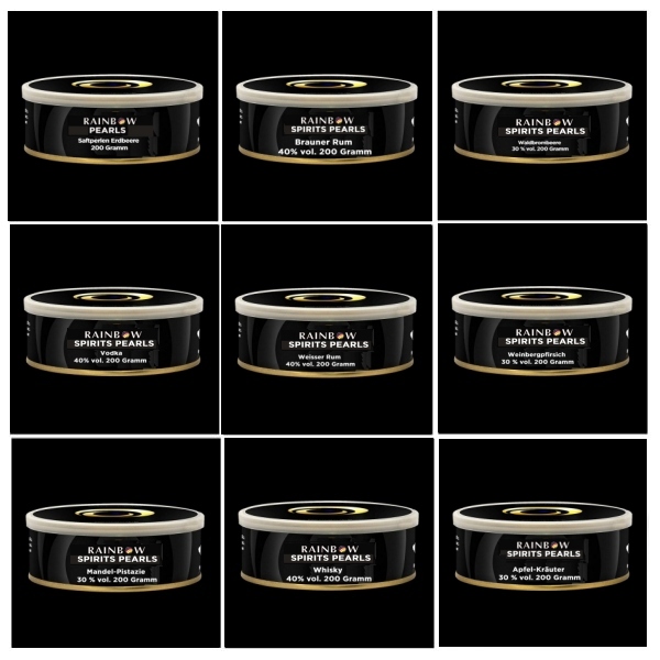 Bestellen Sie unser Spirits Pearls-Partyset zum Vorteilspreis von 130,60 Euro und testen Sie 9 tolle Sorten unseres Sortiments.
