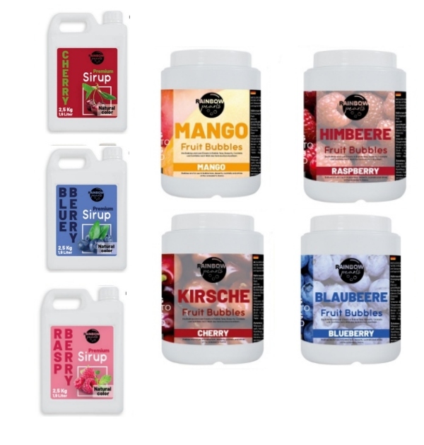 Test Set, Mixpaket mit 3x Sirup 2,5 kg und 4x Pearls 2kg