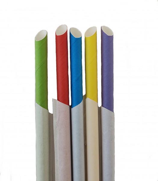 Bubble Tea Trinkhalme Papier bunt mix 12x200mm einzeln gehüllt,