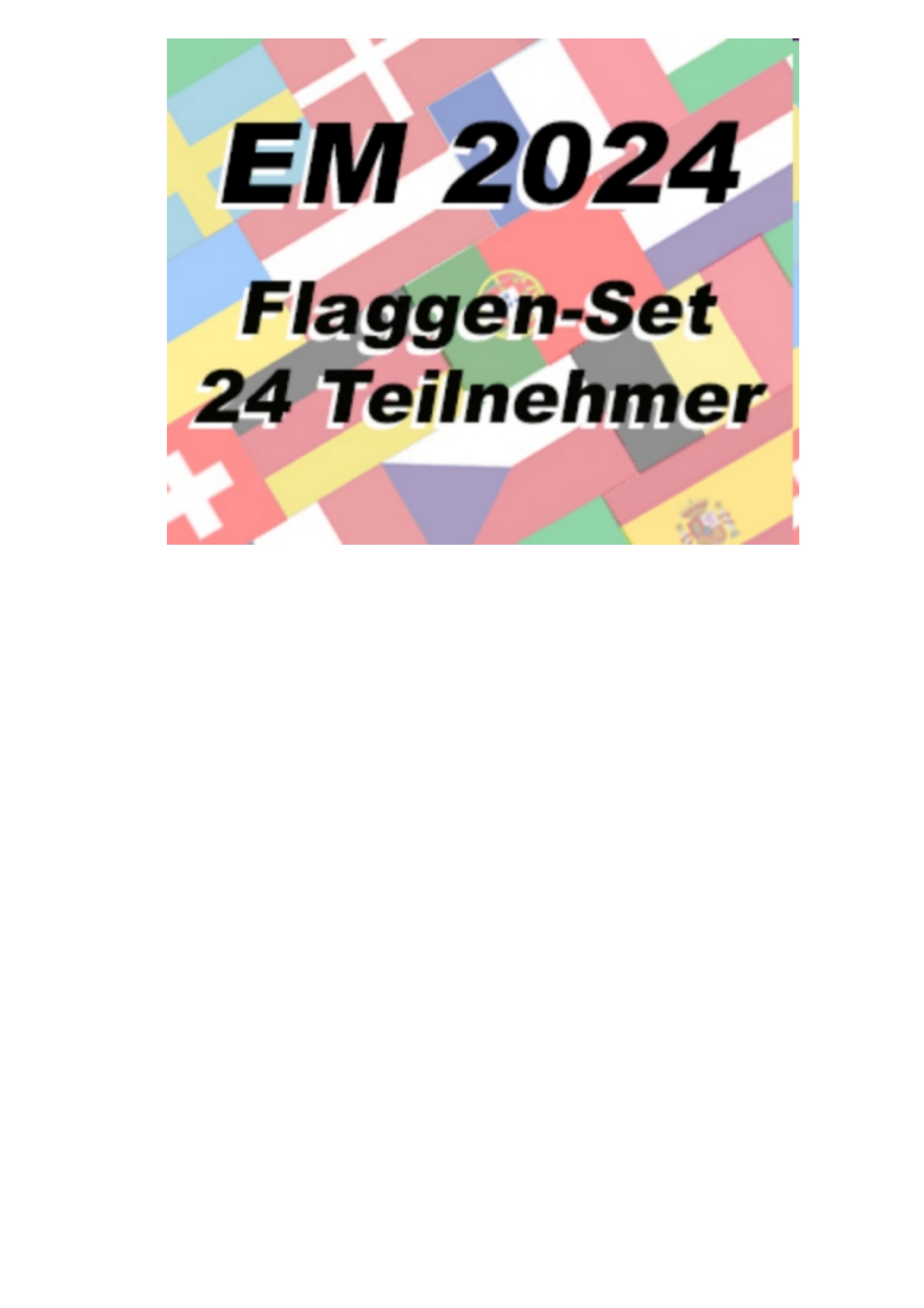 …Flag Set: 24 flags 90 x 150 cm, each consisting of a flag of all 24 participating countries of the Football Championship 2024, polyester flags, 90 x 150 cm, with 2 brass eyelets.