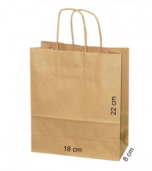 "Paper carrier bag 180+80x220mm kraft brown 90gr/sqm inner handle twisted"