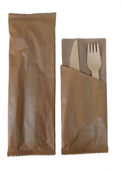 Set de cubiertos de madera tenedor, cuchillo, servilleta 500 pie