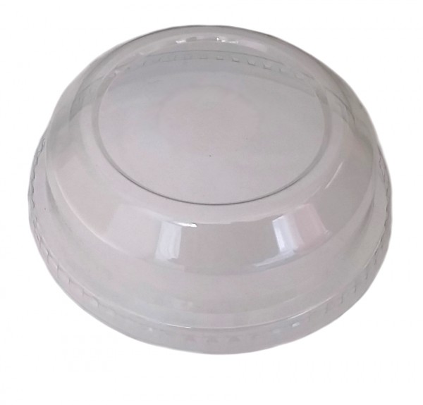 Crystal clear PET dome lid with opening suitable for all transparent PP cups from 12 oz-22 oz. The lids can be used in a variety of ways and are primarily used for sealing fresh salads, fruit salads, yoghurt, muesli and quark products, ice cream and much