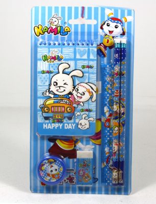 2 Bleistifte, Lineal, Radiergummi+Anspitzer, rosa+blau