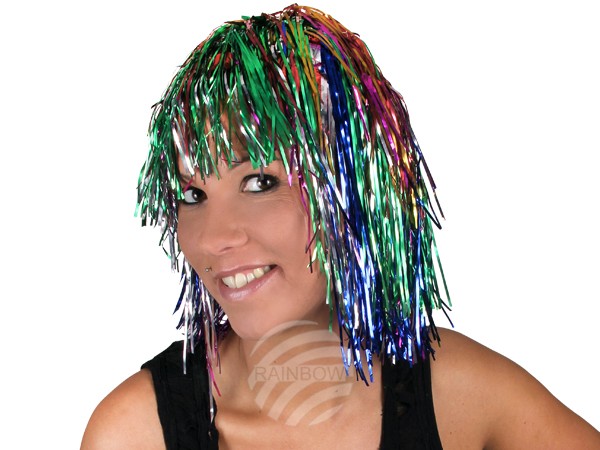 Lametta Perücke Bob regenbogenfarben