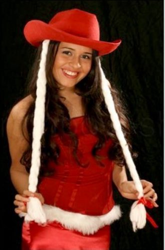 Weihnachts Cowboyhut rot mit langen weissen Zöpfen