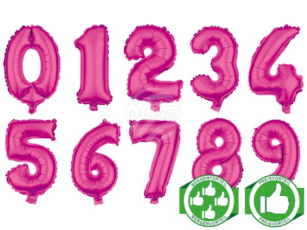 Anzahl je 10 Stück Folienballons 0-9, Farbe pink