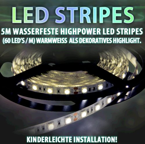 LED Stripes 5400 lm 60 LEDs 5m High Power hot white waterproof